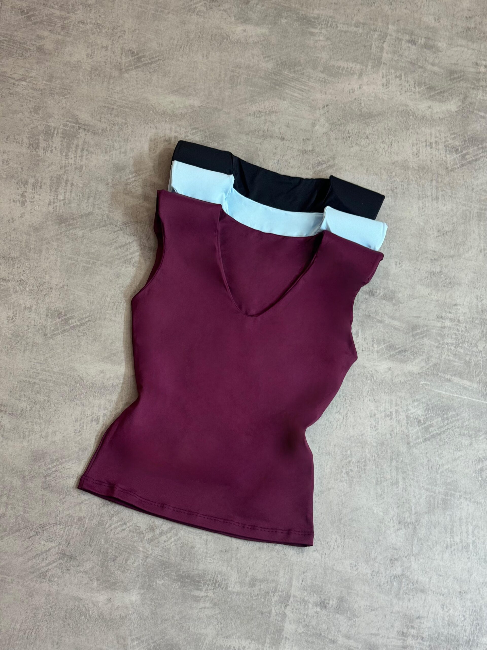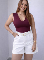 • Modelagem: Regata com ombreiras estruturadas e decote em V