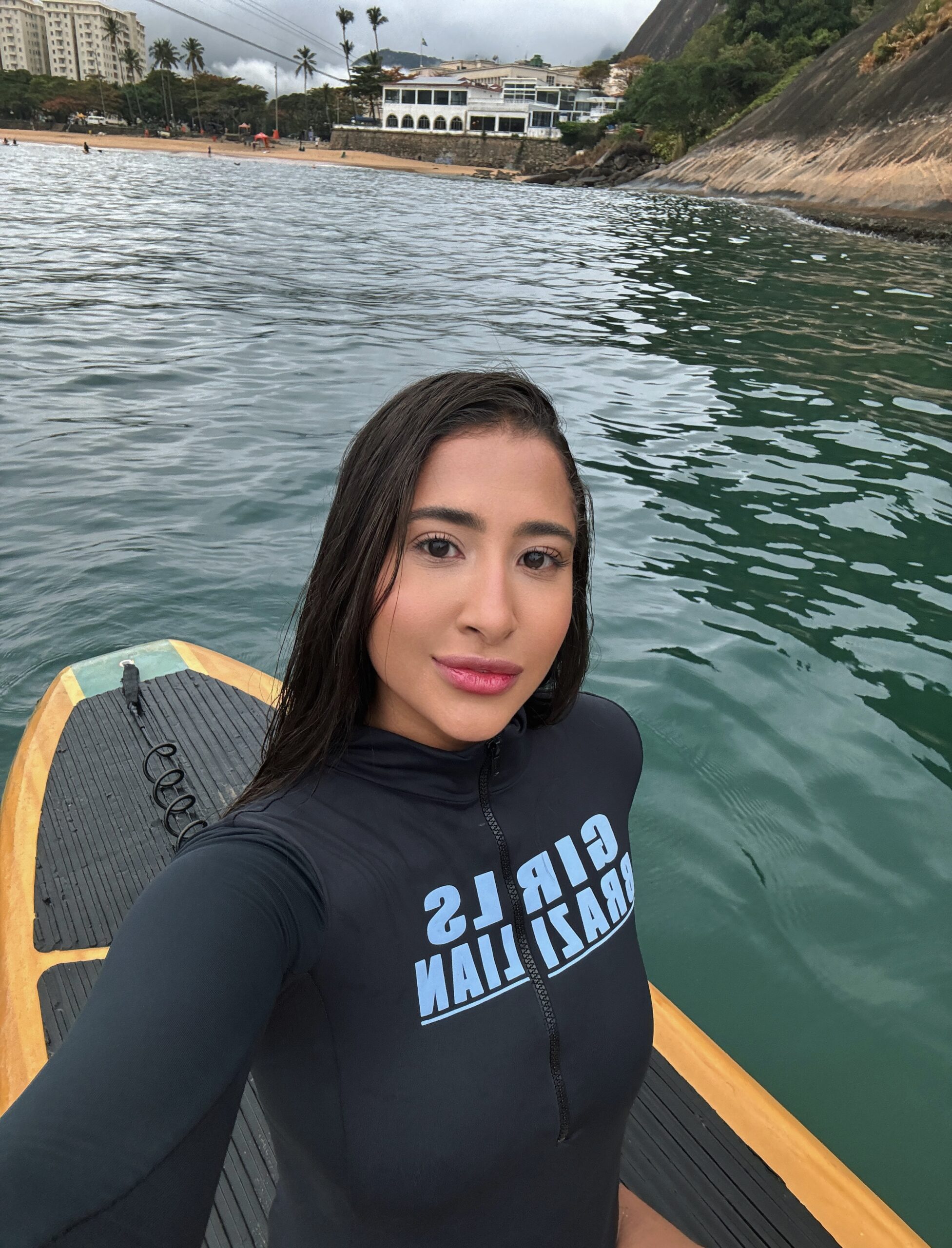 A força esportiva que inspira confiança. O Body Maiô Beach Sport A Brazilian Girls foi criado para unir moda e performance em uma só peça. A modelagem esportiva com mangas longas, zíper frontal e gola alta garante proteção e presença marcante. Com estampa frontal exclusiva em tipografia moderna, traduz energia e atitude para a mulher Citrine, ousada e confiante, que transforma cada movimento em estilo.