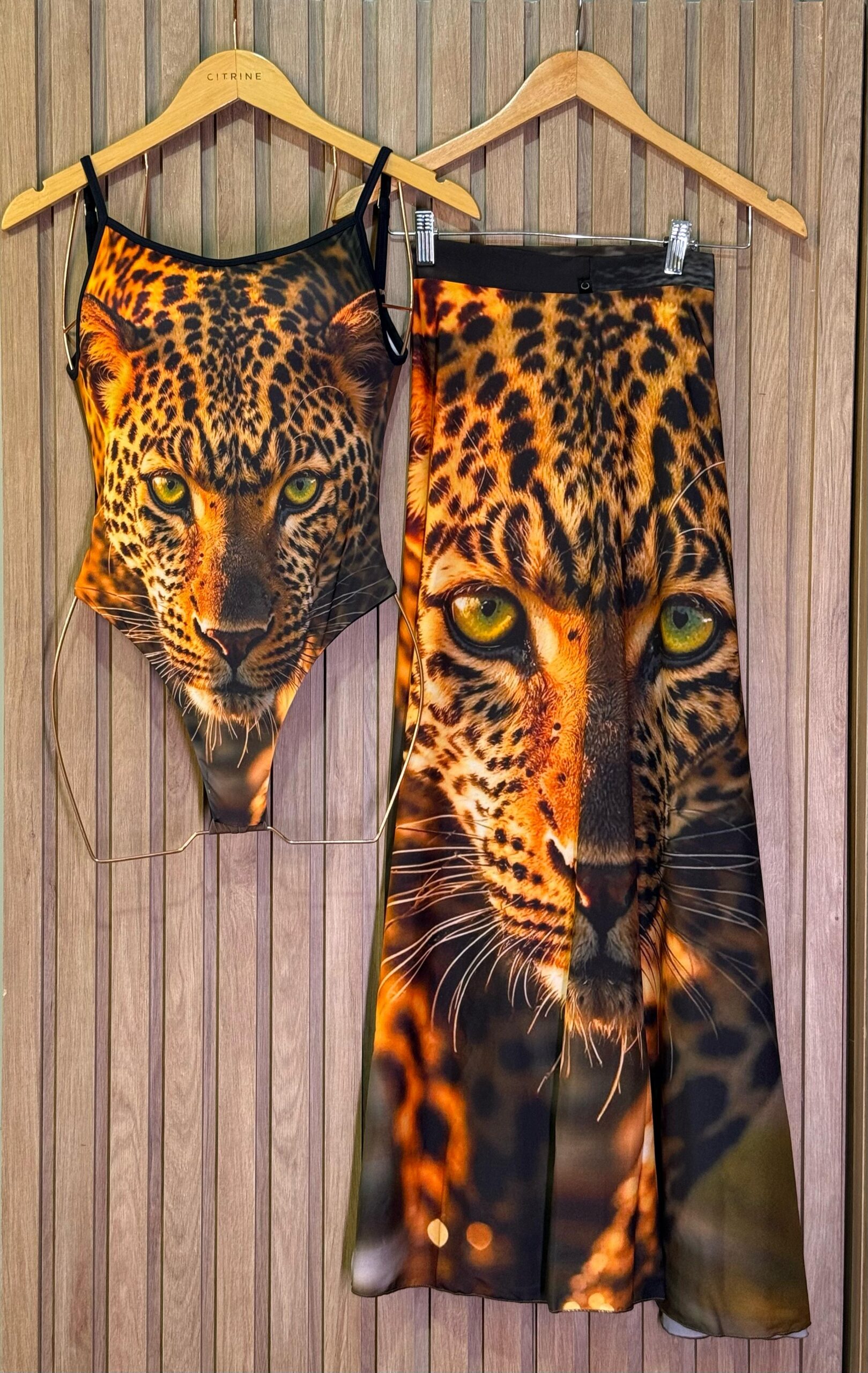 O Conjunto Onça Araguaia é puro impacto. Inspirado na imponência da onça-pintada, símbolo de poder e conexão com a natureza do nosso Araguaia, ele traduz a essência da mulher Citrine: autêntica, ousada e marcante. O olhar penetrante da estampa localizada transmite intensidade e exclusividade, elevando seu estilo a um novo patamar.